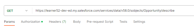 URL: baseUrl/services/data/v58.0/sobjects/Opportunity/describe